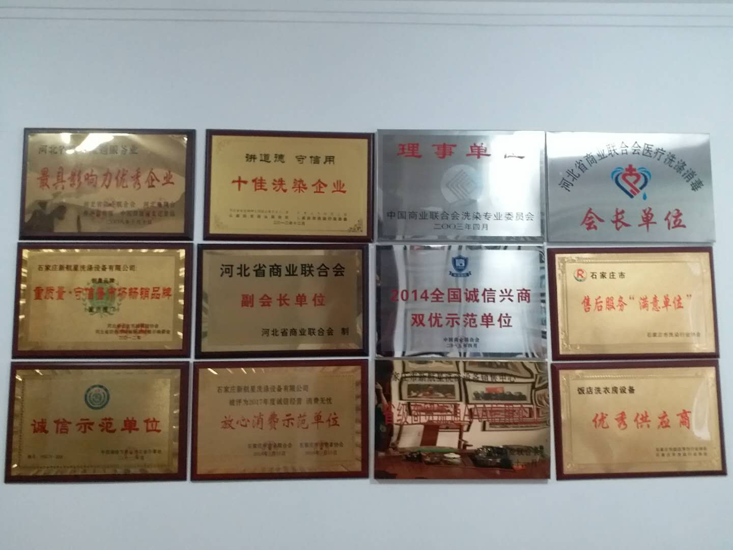 “奧運獎牌”是證明了一個運動員的競技能力,“吉尼斯證書”證明了一個人在某一項事件中是人,而石家莊新航星洗滌設備公司的“榮譽墻”則證明了公司的實力。"誠信示范單位"證書和"放心消費示范單位"證書說明石家莊新航星是一家值得信任的公司,講信用守誠信;"售后服務滿意單位"證書肯定了石家莊新航星的售后服務質量;"蕞具影響力企業(yè)"證書和"十佳洗染企業(yè)"證書體現(xiàn)了石家莊新航星作為洗染行業(yè)的一員,為行業(yè)所作出的貢獻。